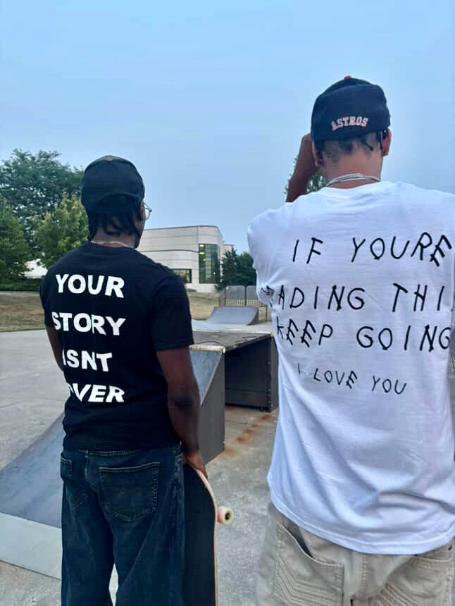 Design: “YOUR STORY ISN’T OVER” text on the back - "Im proud of you even if we have never met on front"